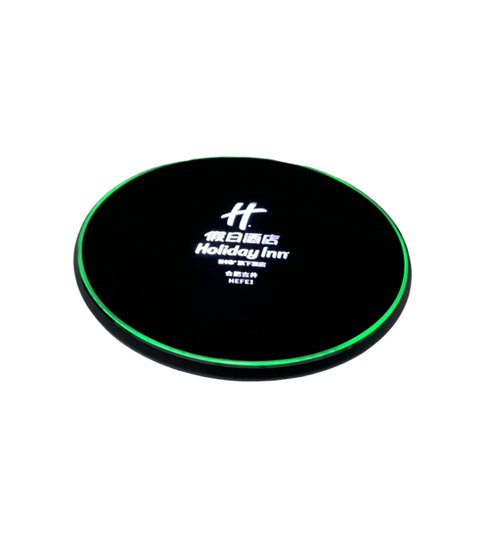 假日酒店定制铝合金发光logo手机桌面无线充电器是专为客户私人定制的款式,面板是亚克力材质+铝合金底壳;中间位置可雕刻客户的logo,通电是发出柔和白色灯光,也可定制红色、蓝色、粉色等多种颜色的灯光。能充分展现客户企业品牌logo。外加黑色纸盒包装加印刷logo,产品整套看起来高档大气,是一款非常适合的礼品定制款式。